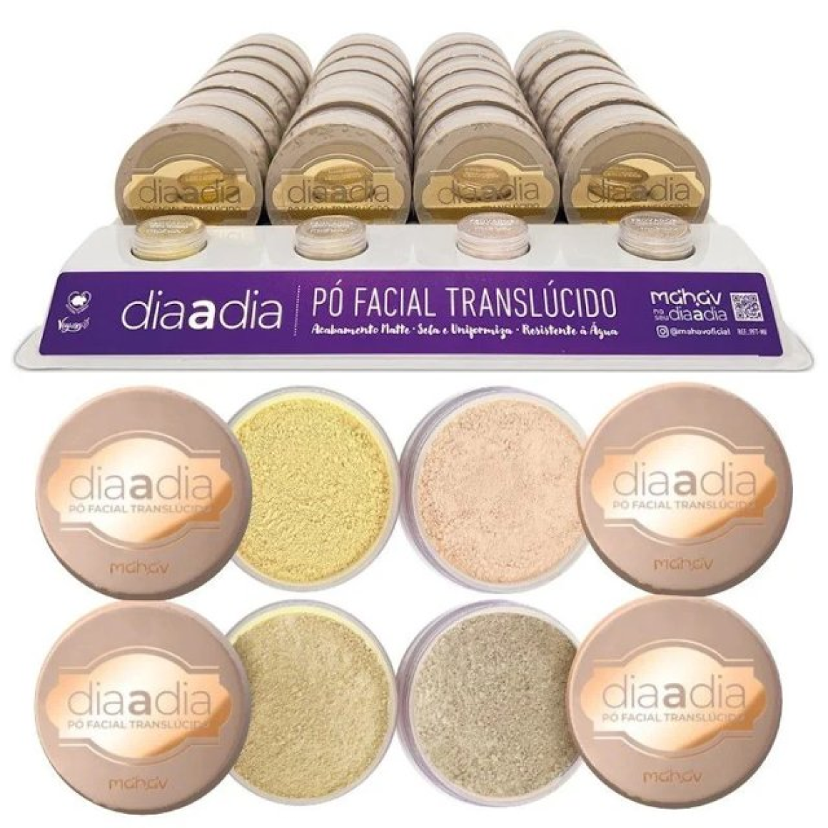 Descrição: O PÓ FACIAL TRANSLÚCIDO DIA A DIA MAHAV é imprescindível no acabamento da maquiagem. É um pó solto finíssimo, com textura leve, que sela a make com efeito matte e toque aveludado. A pigmentação na medida exata é translúcida, não se sobrepõe às cores e aos efeitos da maquiagem.