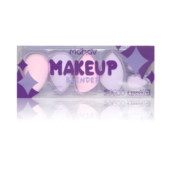 Descrição: O Kit Makeup Blender 06 Esponjas Mahav foi desenvolvido com formatos diferentes para atender a todas as áreas do rosto. Versáteis, as esponjas podem ser utilizadas com produtos cremosos ou em pó, úmidas para acabamentos suaves e naturais, ou secas para uma cobertura total.