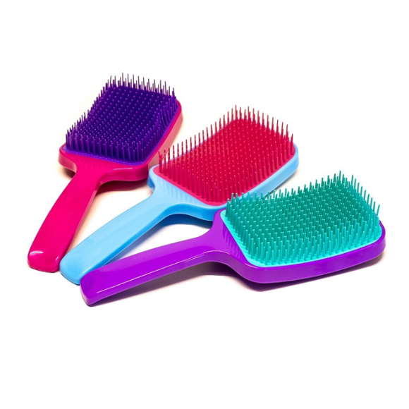 Descrição: A escova Raquete tem um sistema de cerdas em várias alturas que penetram no cabelo e desembaraçam os fios com mais facilidade, sem puxá-los ou arrancá-los. Pode ser utilizada em cabelos com apliques e mega hair pois suas cerdas sem pontas não enroscam nas emendas do cabelo.