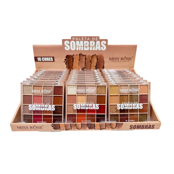 PALETA DE SOMBRA 16 CORES MISS ROSE CX 24 PÇS