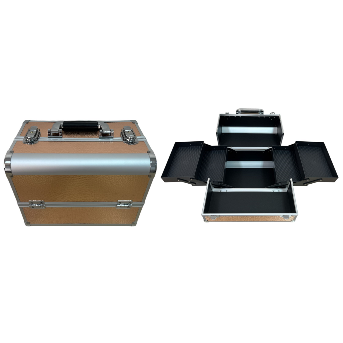 Descrição: Uso profissional e pessoal; Para guarda e transporte de maquiagens, bijuterias, joias e acessórios; Acessório que não pode faltar para os maquiadores; Design e estampa modernos; Lindo acabamento com perfis de alumínio; Fechadura com 2 chaves (1 reserva);
