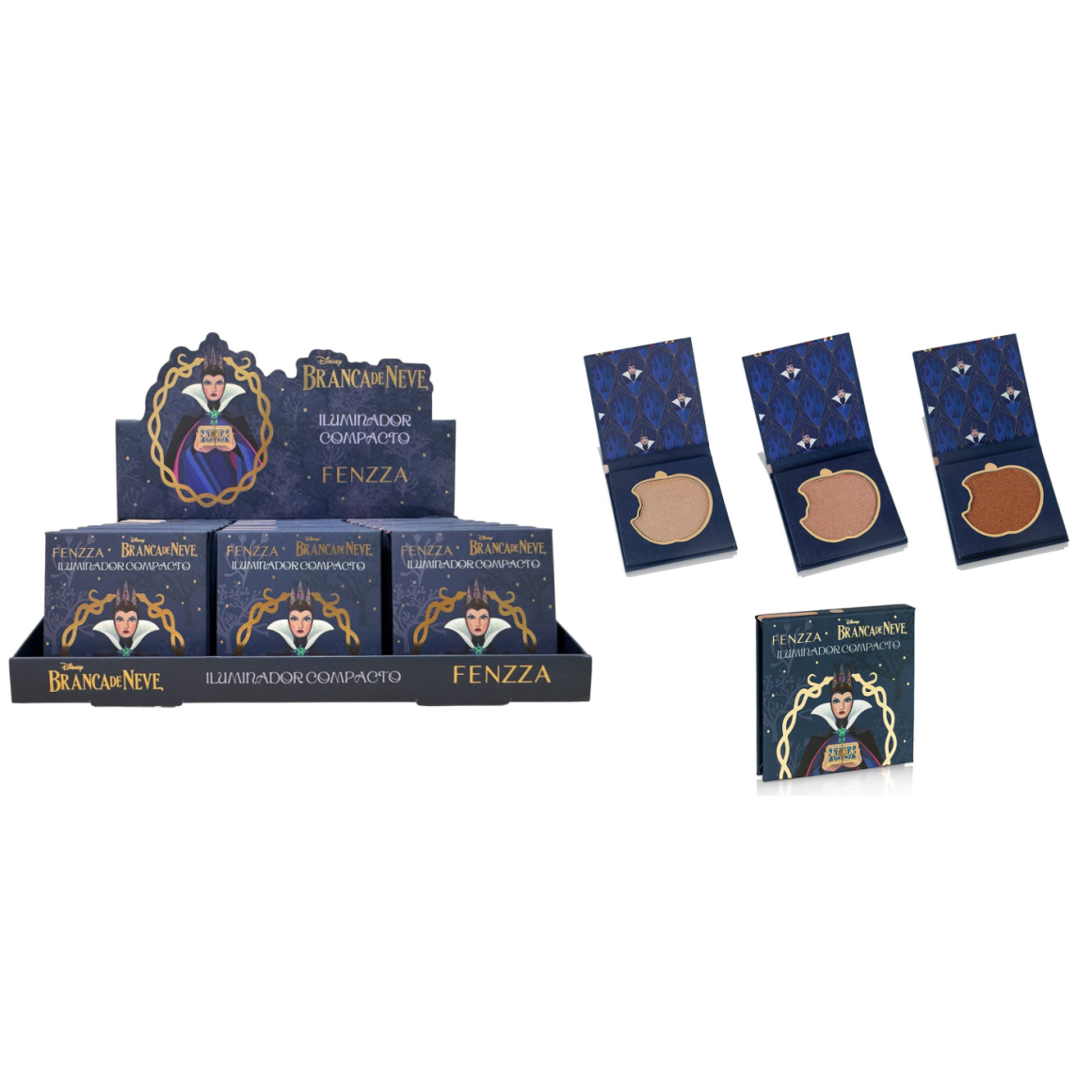 Descrição: Iluminador compacto com 3 cores cintilantes inspiradas em Branca de Neve e Rainha Má. Textura leve, acabamento radiante e sofisticado para destacar os pontos de luz do rosto com delicadeza e encanto atemporal.