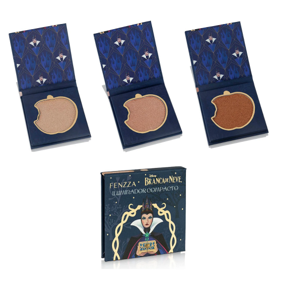 Descrição: Iluminador compacto com 3 cores cintilantes inspiradas em Branca de Neve e Rainha Má. Textura leve, acabamento radiante e sofisticado para destacar os pontos de luz do rosto com delicadeza e encanto atemporal.