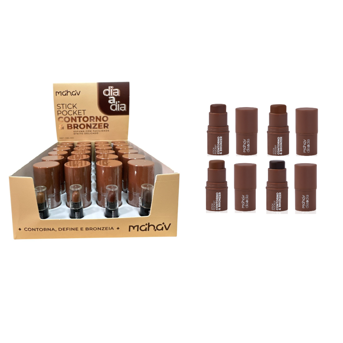 CONTORNO E BRONZER STICK POCKET DIA A DIA MAHAV CX 24 PÇS