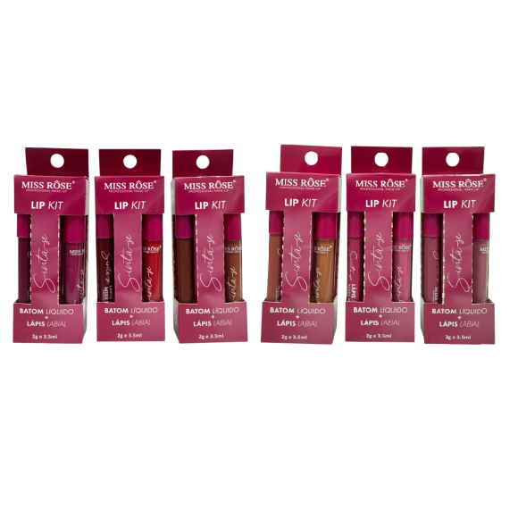 Descrição: O Lip Kit Batom e Lápis Labial da Miss Rose combina praticidade e estilo em um só produto. A versão líquida ou em bastão geralmente vem acompanhada de um lápis labial no mesmo tom, ideal para esfumar ou contornar os lábios com precisão.
