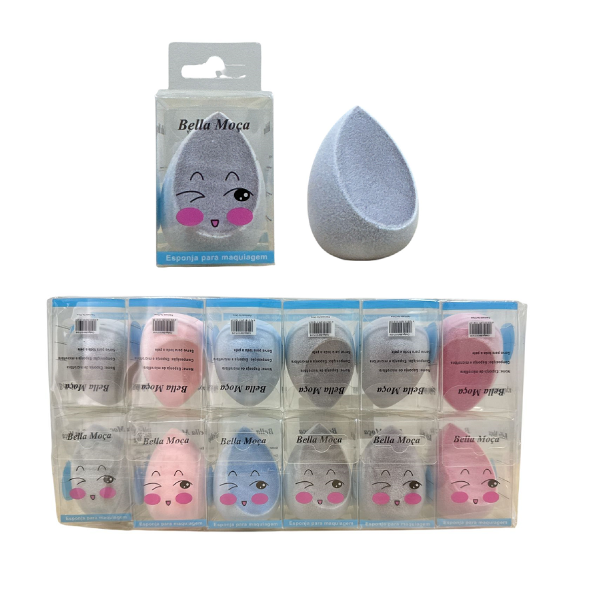 ESPONJA DE MAQUIAGEM VELUDO CHANFRADA BELLA MOÇA PCT 12 PÇS