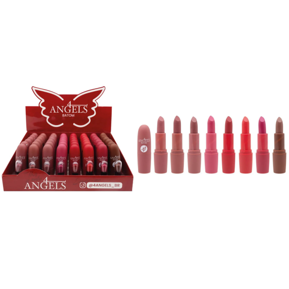 Descrição: O Batom Cremoso da 4 Angels é aquele item queridinho que une cor intensa, conforto e hidratação em um só produto! Sua textura é super macia, desliza facilmente nos lábios e deixa um acabamento cremoso lindo e uniforme.