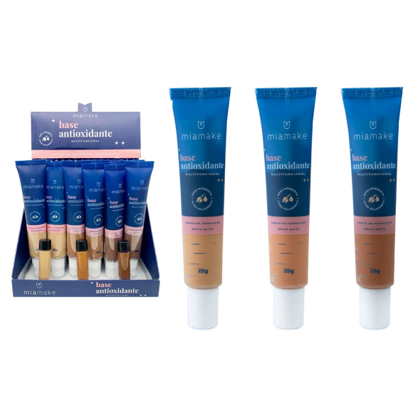 BASE MATTE TONS ESCUROS ANTIOXIDANTE MULTIFUNCIONAL MIA MAKE CX 24 PÇS