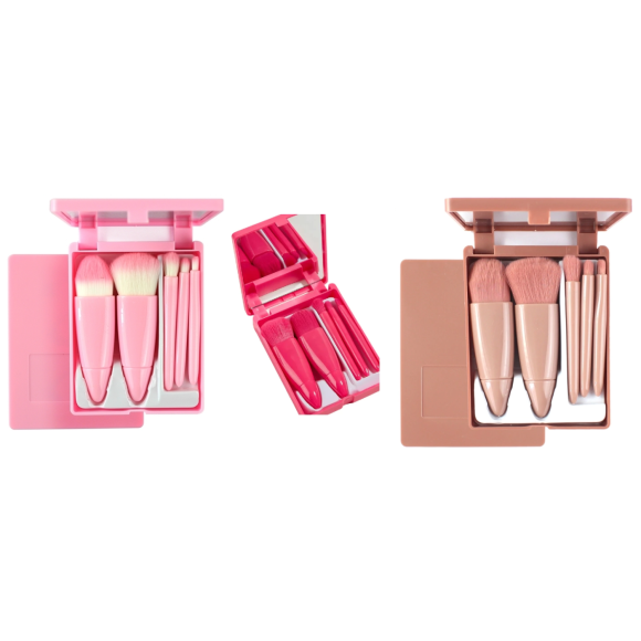 Descrição: Esse é um estojo de pincéis portátil com espelho, desenvolvido para aplicação de produtos em pó, líquidos e cremosos, produzido com cerdas sintéticas super macias para maquiagem leve e uniforme.