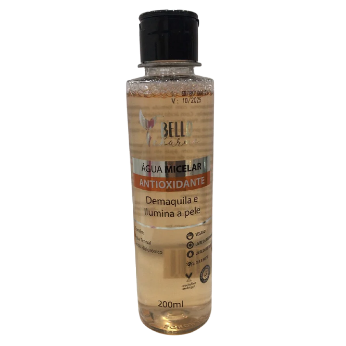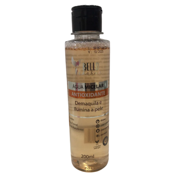 Descrição: A Água Micelar Antioxidante Bello Charme foi desenvolvida para promover uma limpeza facial suave, removendo toda maquiagem e impurezas sem agredir a pele. Enriquecida com Água Termal, Ácido Hialurônico e ativos antioxidantes, proporciona uma pele limpa e com viço natural.