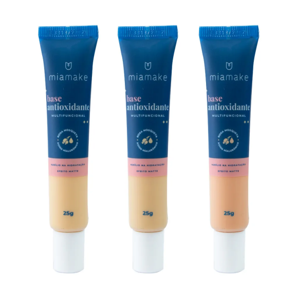 3 UNDS BASE MATTE TONS CLAROS ANTIOXIDANTE MULTIFUNCIONAL MIA MAKE