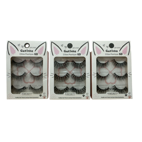 CÍLIOS POSTIÇOS 3 PARES 6D GATINHO HINFINITY