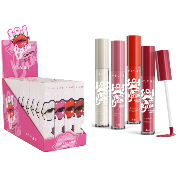 Descrição: O SOS Bocão da Vivai é uma coleção de um gloss que da aquele Bocão que buscamos, conta com 4 lindas cores, além de super confortável nos lábios e dar uma corzinha discreta e cheia de charme.
