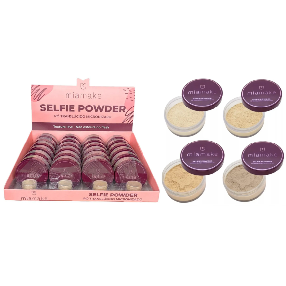 Descrição: O Pó solto Pó Translúcido Micronizado Selfie Powder Mia Make tem textura ultrafina e aveludada ele matifica a pele, reduzindo a aparência dos poros e linhas de expressão. Ele deixa um aspecto natural porém, cobrindo as imperfeições.