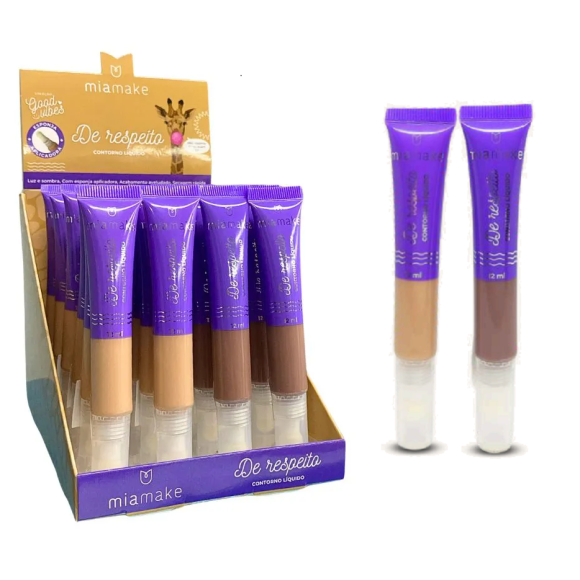 Descrição: Com uma esponja aplicadora integrada na embalagem, facilita a aplicação e esfumação do produto. Disponível em duas tonalidades, claro e escuro, o Contorno Líquido De Respeito Mia Make é perfeito para definir e realçar os contornos do rosto com precisão e naturalidade.