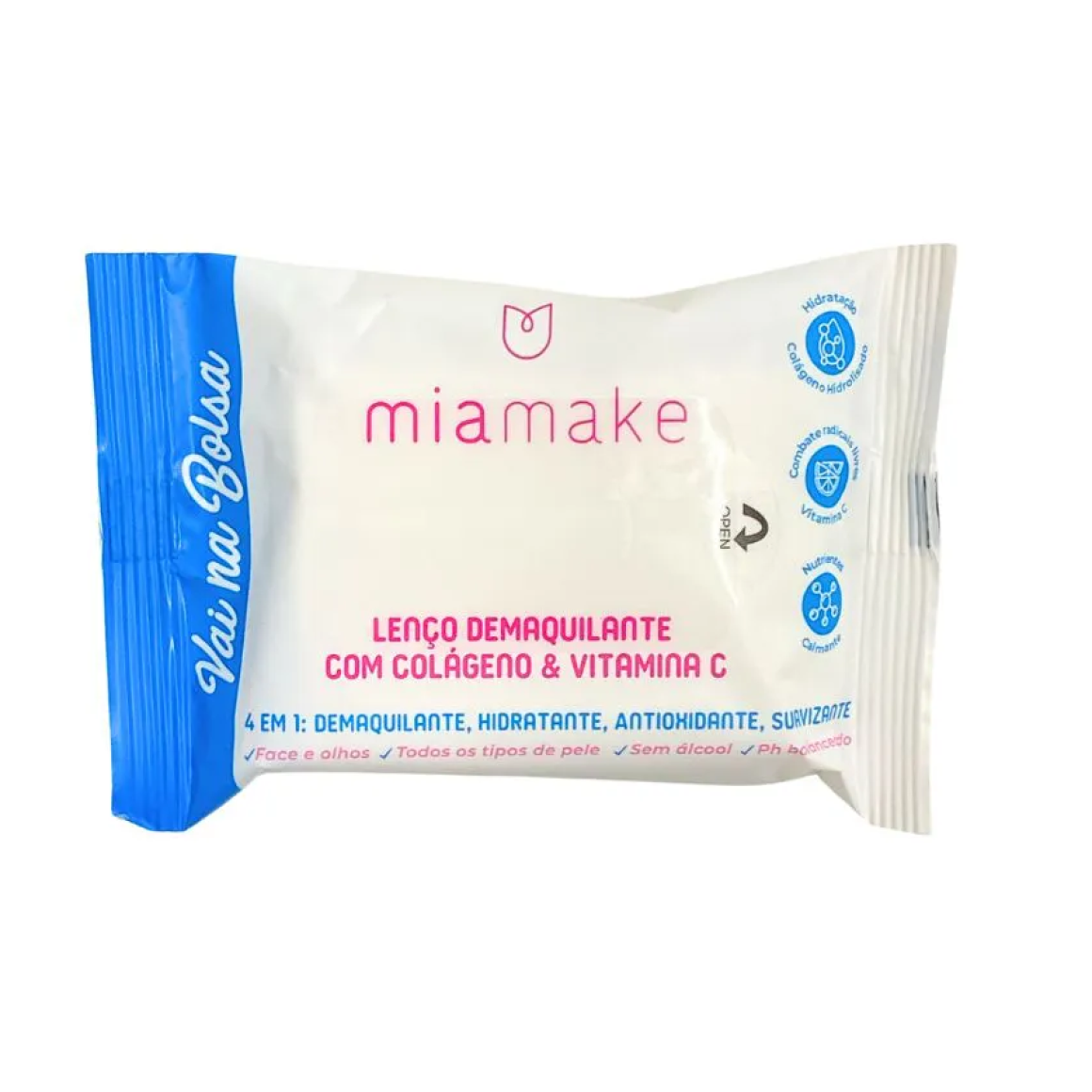 LENÇO DEMAQUILANTE COM COLAGENO e VITAMINA C MIA MAKE