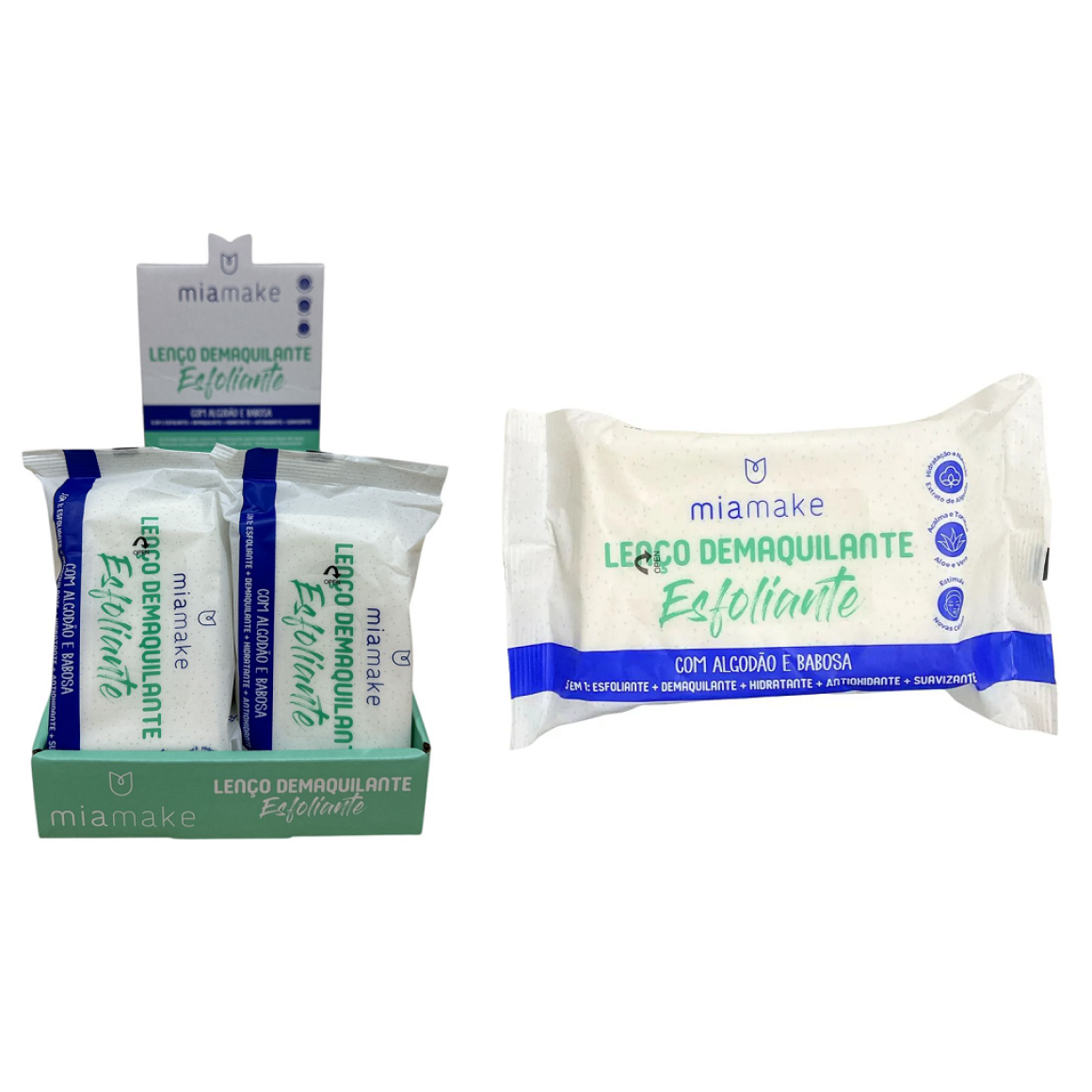 LENÇO DEMAQUILANTE ESFOLIANTE MIA MAKE CX 12 PÇS