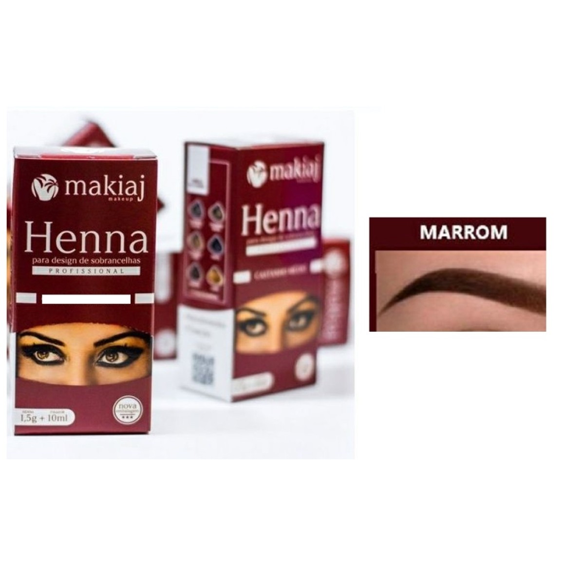 Descrição: A Henna Makiaj Profissional foi desenvolvida pensando em você que deseja realçar ou corrigir o desenho de suas sobrancelhas. Com fixador a base de ativos naturais adstringente, que reduz a oleosidade da pele aumentandoo rendimento e tempo de fixação.