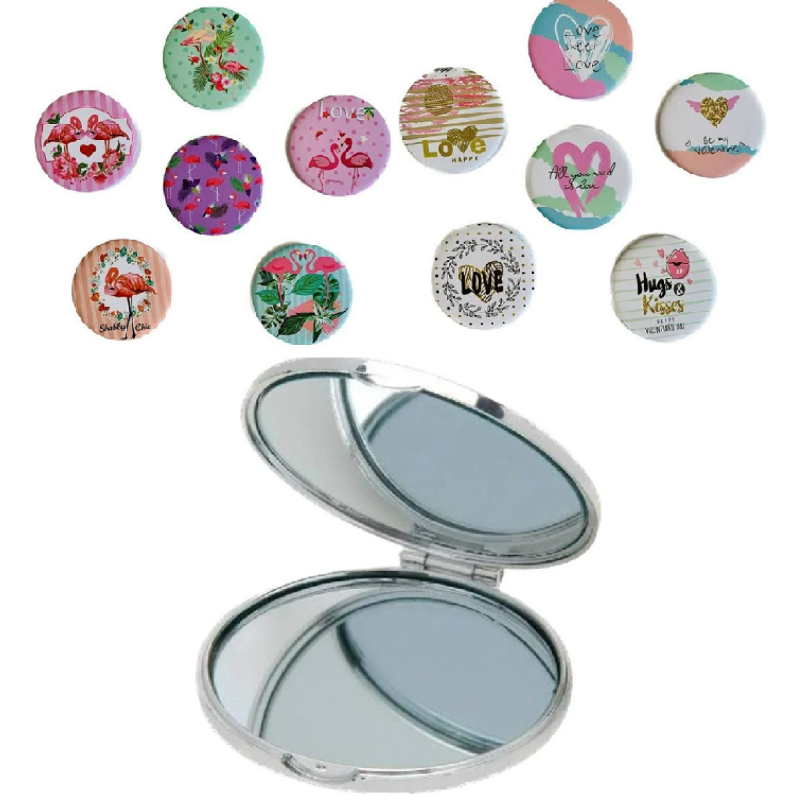 A embalagem, além de linda e compacta, possui dois espelhos, um comum e outro com lente de aumento.