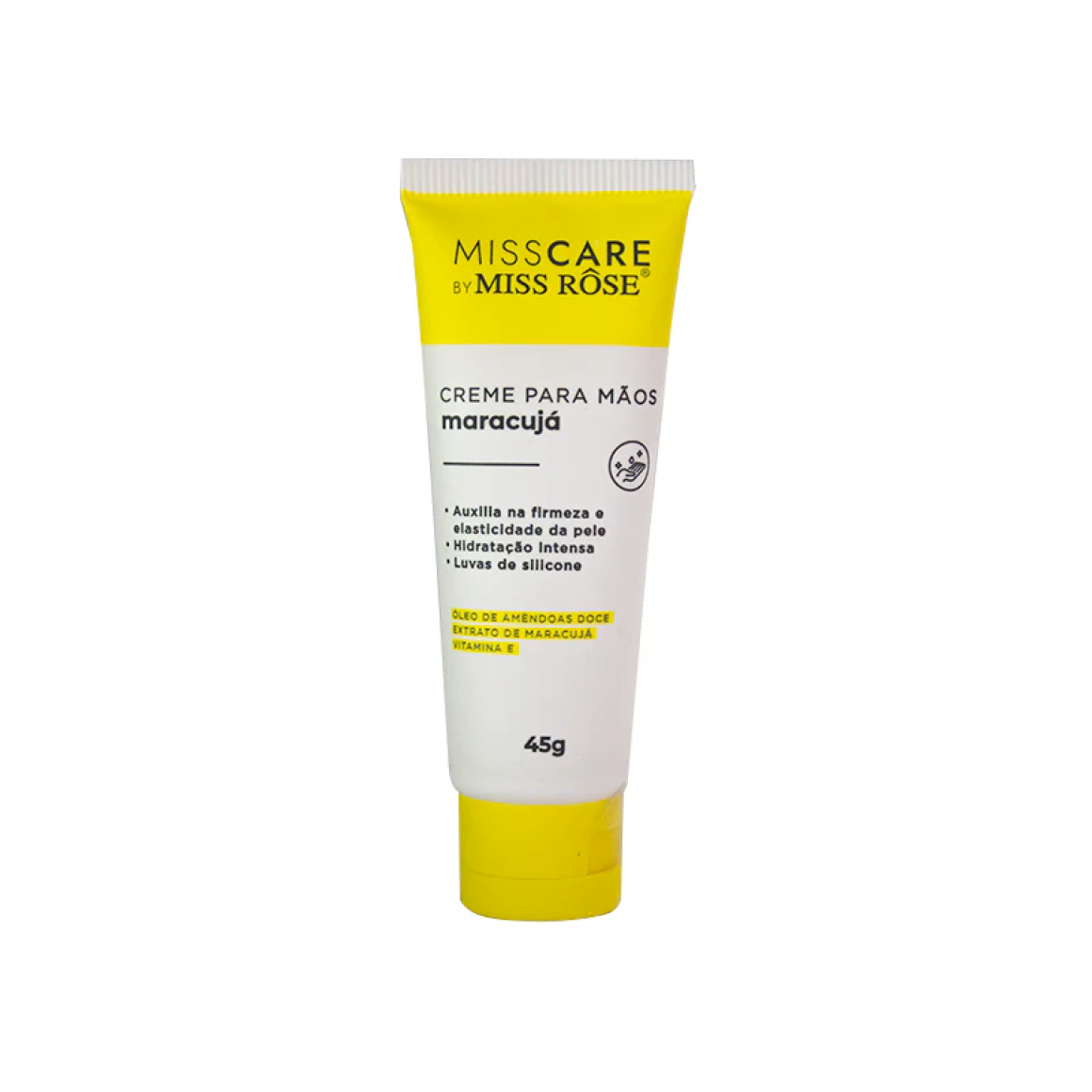 Modo de usar: Aplique uma quantidade generosa do Creme Para as Mãos de Maracujá Miss Rôse nas maos limpas e secas. Massageie até total absorção, focando nas áreas mais ressecadas e ásperas. Pode ser usado diariamente, especialmente à noite, para um cuidado intenso.
