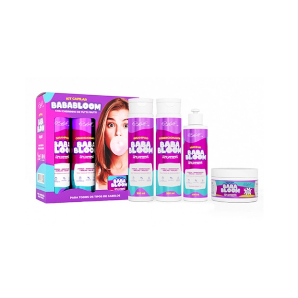 Descrição: A Linha Bababloom Tutti Frutti contém em sua formulação óleo de coco que além de dar brilho e deixar os fios macios, ele consegue penetrar na fibra capilar, devolvendo os nutrientes que as madeixas precisam para fugir do aspecto ressecado. Já os aminoácidos penetram rapidamente, restaurando e hidratando os fios. Além de evitarem a quebra dos cabelos, devido ao aumento da capacidade de retenção de água, tornando-os hidratados e macios.