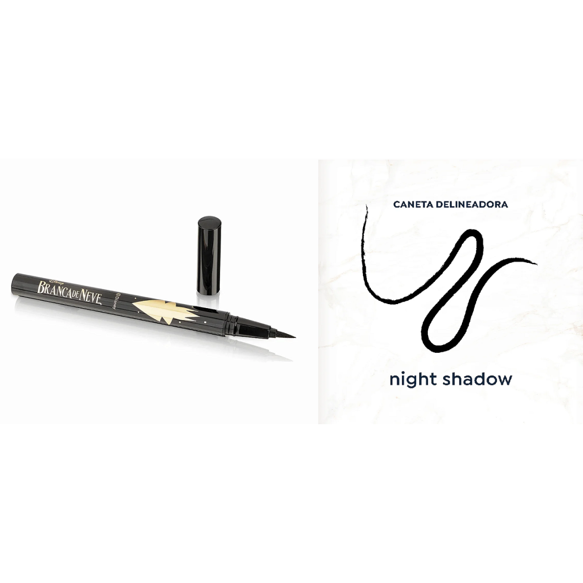Descrição: Caneta delineadora inspirada em Rainha Má. Traço preciso, cor intensa e longa duração para realçar o olhar com delicadeza e praticidade, trazendo o charme clássico da princesa para sua maquiagem.