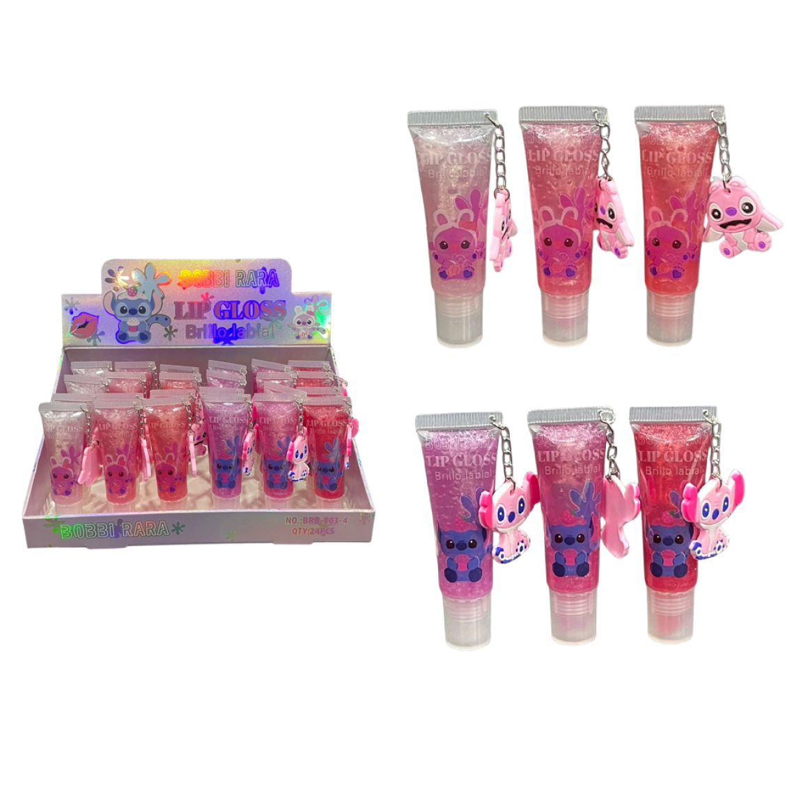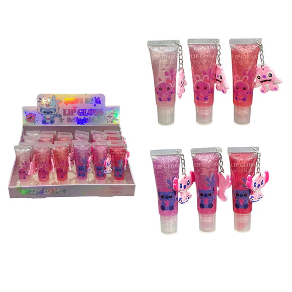 Descrição: Gloss 2 em 1 modelo possui embalagem com um pingente/chaveiro temático, que também funciona como um mini gloss, textura Leve e não pegajosa, proporcionando um efeito espelhado aos lábios.