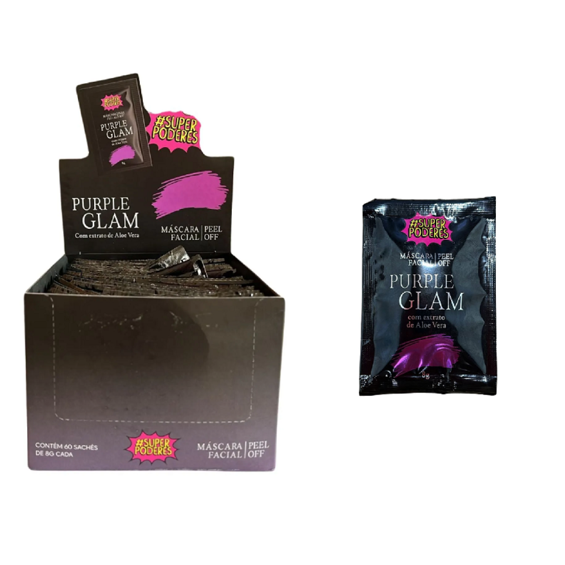 MASCARA FACIAL PEEL OFF PURPLE GLAM SUPER PODERES CX 60 PÇS