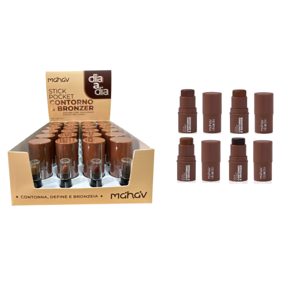 CONTORNO E BRONZER STICK POCKET DIA A DIA MAHAV CX 24 PÇS