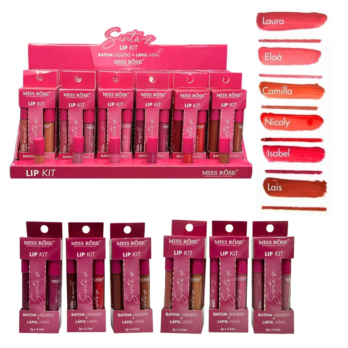 Descrição: O Lip Kit Batom e Lápis Labial da Miss Rose combina praticidade e estilo em um só produto. A versão líquida ou em bastão geralmente vem acompanhada de um lápis labial no mesmo tom, ideal para esfumar ou contornar os lábios com precisão.