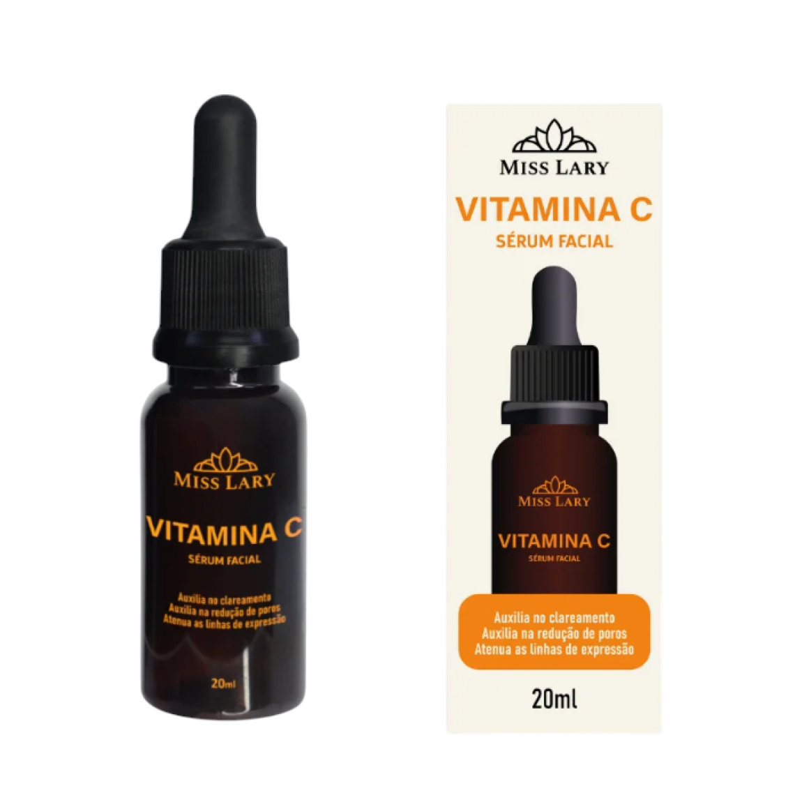 Descrição: O Sérum Facial Vitamina C da Miss Lary é um produto rejuvenescedor que oferece múltiplos benefícios para a pele. Sua fórmula contém Vitamina C, Óleo de Romã, Vitamina E e Esqualano, que promovem a renovação celular, redução dos sinais de envelhecimento e linhas de expressão, clareamento e uniformização do tom da pele, efeito tensor e ação antioxidante.
