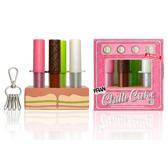 Juntei quatro campeões: CHILLI23, PINKCHILLI, CHOCOCHILLI e GREENCHILLI pra celebrar, em grande estilo, os 4 aninhos de Fran By FR. Essa edição especial representa uma das receitas de sucesso da minha marca: contar histórias com amor, criatividade e muito glow! Nosso forninho super fofo acabou de assar o ChilliCake: um bolinho recheado com os 4 chillis, prontinhos pra você usar e arrasar! E como festa boa tem que ter surpresa, os chillis vêm com furinhooo… Isso mesmo! E mais: dentro do ChilliCake tem um super presente pra vc: uma correntinha para cada chilli. Você vai pendurar onde quiser assim que tirá-los do forno. Não é demais?! Mas atenção: essa fornada é LIMITADA! Brilhe, brinque e se divirta com mais esse lançamento especial!