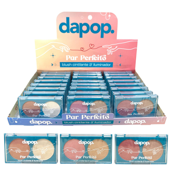 PALETA PAR PERFEITO BLUSH CINTILANTE E ILUMINADOR DAPOP CX 24 PÇS
