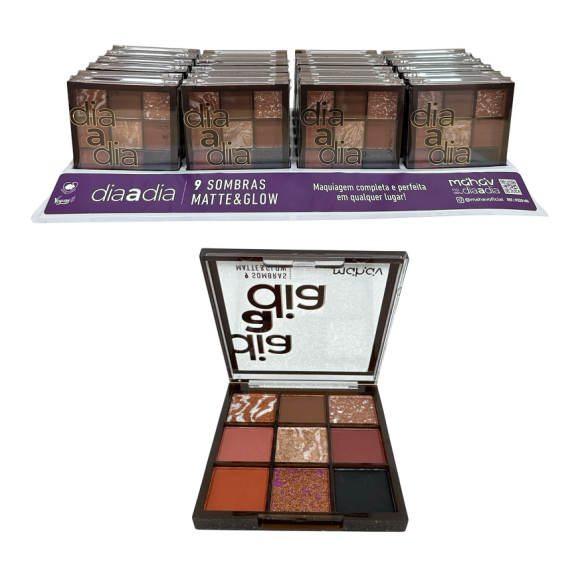 PALETA DE SOMBRAS 9 CORES DIA A DIA MAHAV CX 24 PÇS